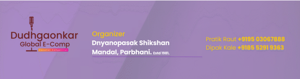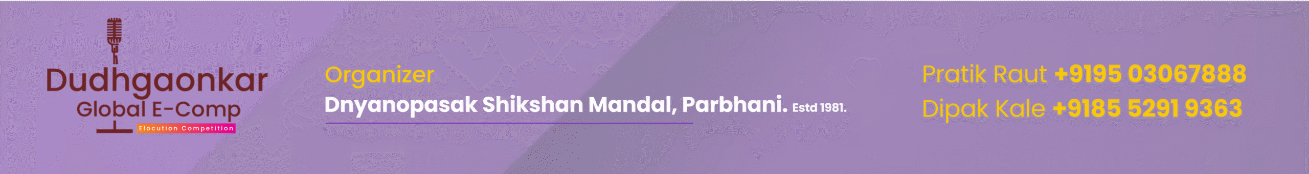 We extend our heartfelt gratitude for the overwhelming response to last year’s Global Elocution Competition. In Short Time, this competition has gained popularity as “Competition with highest quality topics”. Once again, we — the organizers, Dnyanopasak Shikshan Mandal, Parbhani — are continuing this proud tradition and bringing to you third year of this E-Comp...